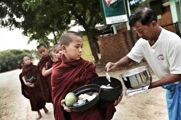 缅甸人在佛教思想的长期影响下乐善好施。在缅甸,几乎天天有人募捐,有人施舍,施舍已成为缅甸人的一种习惯。缅甸人施舍不讲究物品的贵重而注重是否心甘情愿。全国32万僧尼的斋饭、袈裟和日用品是教徒布施的。