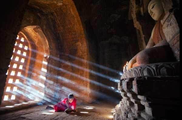在蒲甘,一天中最激动、迷人的一刻就是登塔等日落。多少人跋山涉水而来,选择自己喜欢的佛塔, 安静的坐着、躺着、睡着,彻底的放空自己,就是为了享受这静静发呆的一刻。
