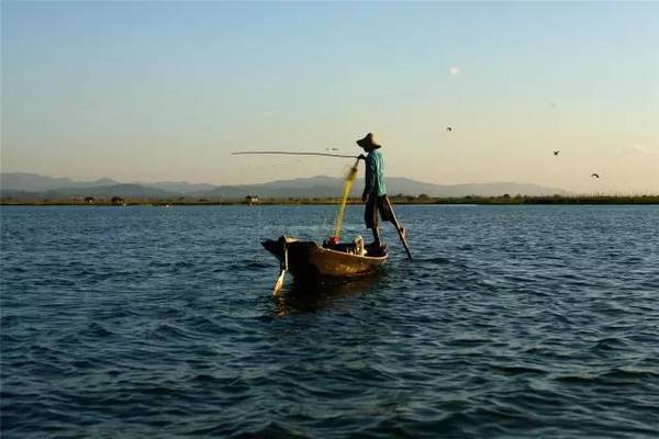 当地渔民从小练就了单脚划船的独门绝技,据说世界上独一无二。