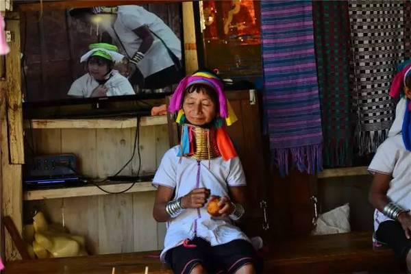 在茵莱湖还可以看到长颈族,妇女从小便用闪亮的铜圈绕颈,随着年龄的增长,铜圈也跟着增加,将脖子尽量拉长,突出那种畸形美。