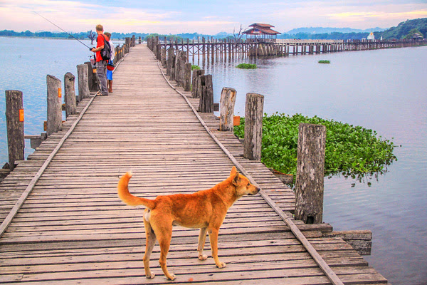 不似日落时分的那份吵杂那份冲忙,此时漫长的乌本桥只是三三两两的游人,或者往来其上的当地人,以及这只毫无目的或者说是方向的流浪狗,带出了一份难以用语言来表达的静逸。
