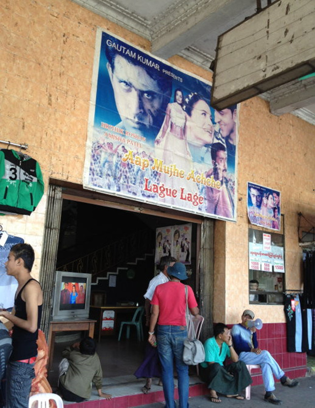 这是仰光电影院,贴在斑驳墙面上的电影海报,小售票窗口,工作人员用扩音器使劲的吆喝路人,似曾相见过。