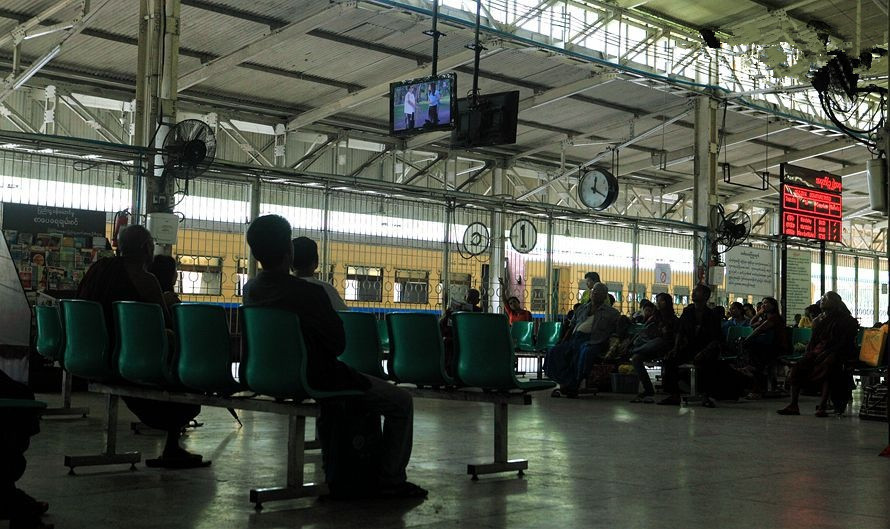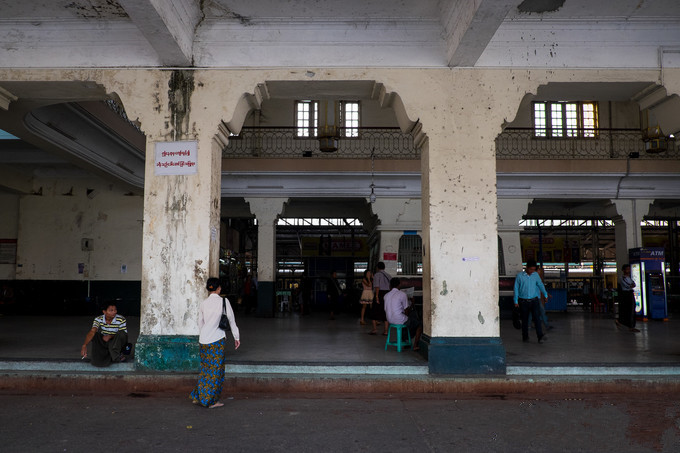 中央车站外部看着挺有气势,内部很破旧,倒也没有拥挤不堪,缅甸人民很淡定的在等车,大约缅甸是没有春运的。工作人员已经很熟练看到游客打扮的就是来坐小火车的,直接会告诉你在7号站台,如果坐满全程3小时38站,外国人的票价是1000缅元。