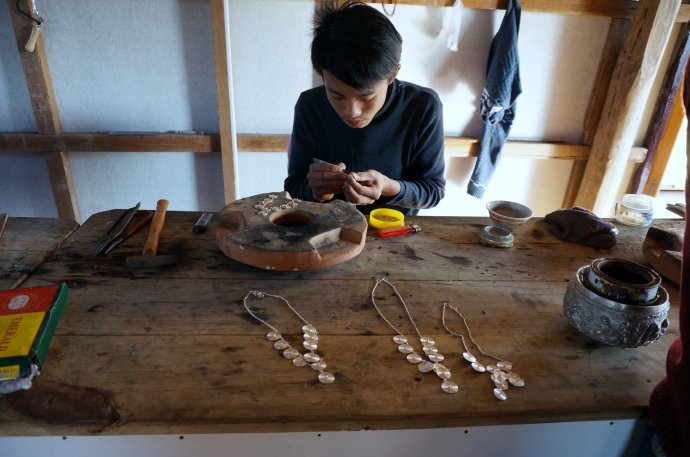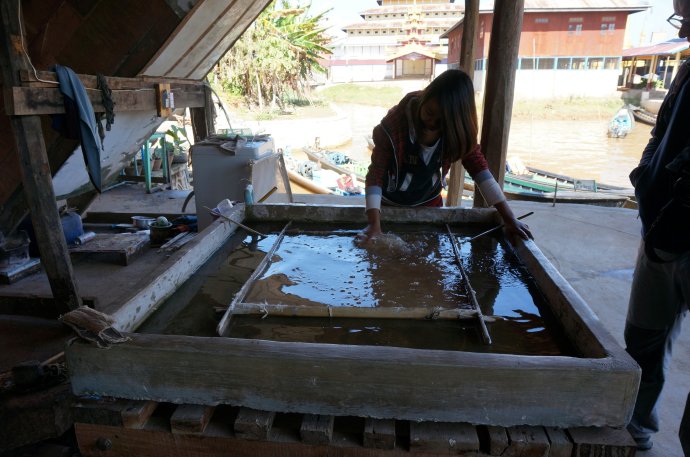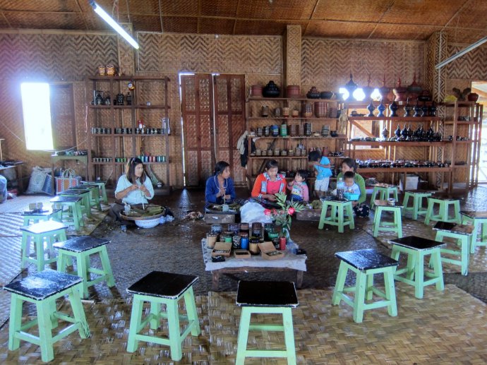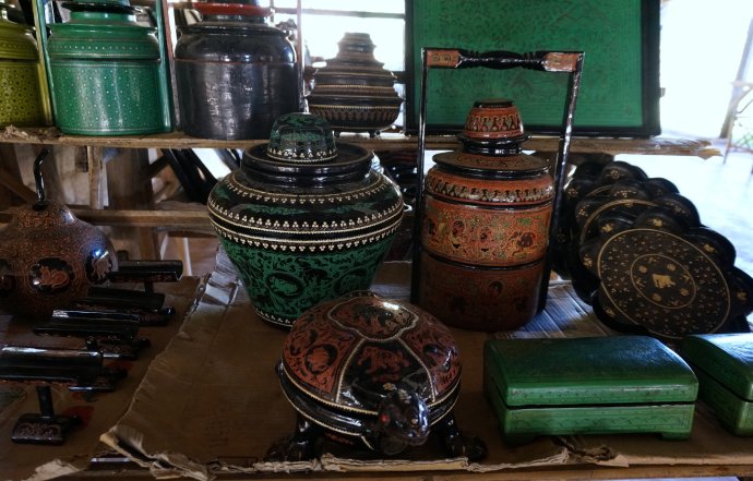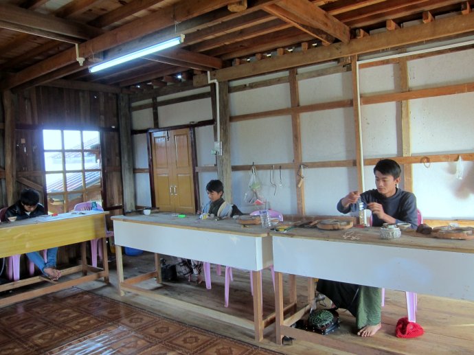 他们还凭借自己灵巧的双手,制做出很多享誉缅甸国内外的手工艺品。我们有幸参观了这里的油纸伞、银器、漆器作坊,深为匠人们一丝不苟,精益求精的精神所感动。
