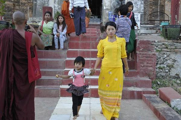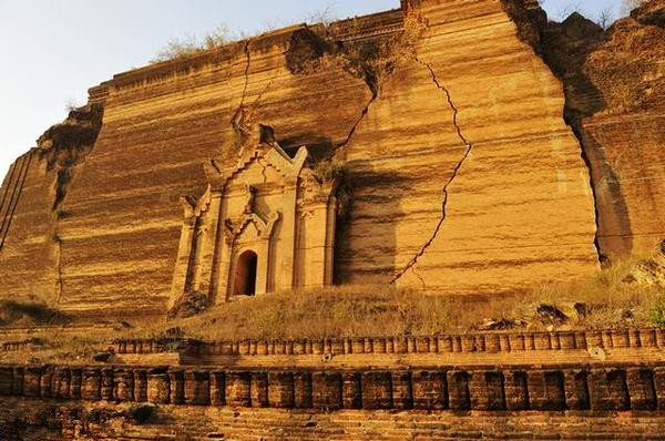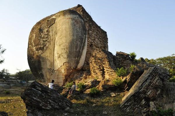 上船的时候还是下午,阳光强烈,大约半个小时,船便抵达了敏贡。敏贡有一座雄伟壮观的佛塔,它是缅甸国王孟云为他的王后建造的一座未完成的皇宫,是世界上最大的砖制建筑之一。