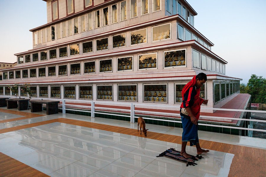 这些是家园金字塔,由数百数千尊佛构建。图中的人担任擦洗地板的工作。