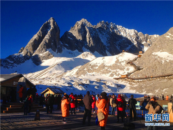 游客和摄影爱好者在玉龙雪山拍摄美景。王晓荣 摄