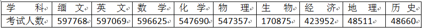2015年缅甸高考各学科参加考试的人数