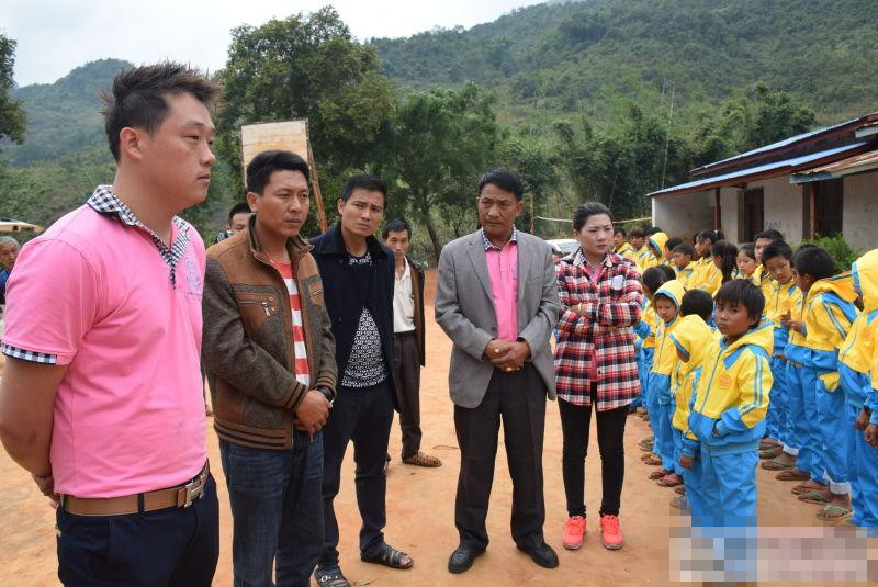 果敢青少年文化教育基金会理事长尹马三、副理事长罗老興、秘书长陈杰和理事马三军、李秉义与乡文教组组长吴兆钧及石园子乡乡长何忠朝等,一同前往石园子乡丫口街村果成小学校为学生们捐助每人一套校服,并对学校学生就学情况作了详细了解。