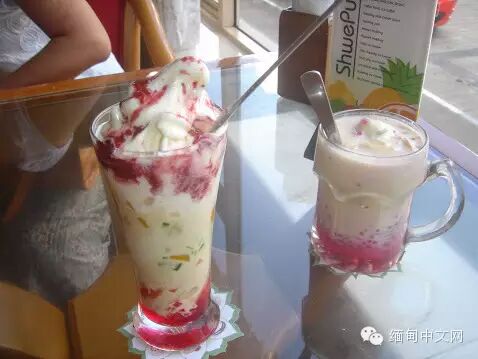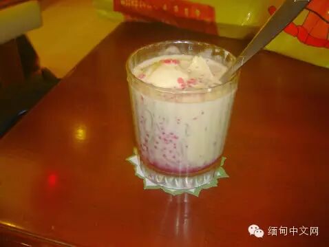 其間供應的冷飲食品,更加讓人驚喜;每份飲料約800緬幣至1800左右,全屬精心製作.絕對物有所值,圖片第三張為印度式筒管製冰淇淋,緬語又叫都裴,讓人一試難忘,夢寐以求的最高級冰淇淋製作,不容錯過.