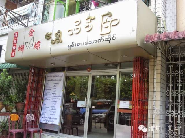 座落於仰光嘎李大街(好像是七街與八街之間的大街道)的金蝴蝶撣族菜館,據說已經營九年,那天适逢路經嘎李道,還不到午餐時間,門面略顯冷清,但不失其優雅寧靜,別具一格的吸引力.