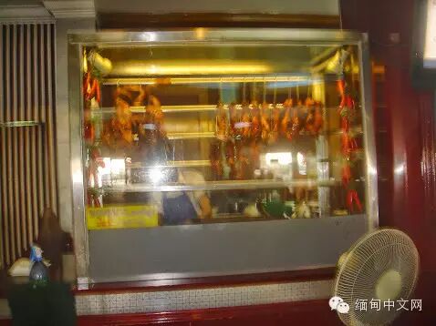 美食中心內還有最地道的粵式烤鴨店,除了烤鴨,燒肉,义燒,燒排骨,鼓油鷄等等被譽為廣東燒腊應有盡有,獨欠燒鵝,實在是美中不足,稍為遺憾!但廣式地道燒腊在仰光極為罕見的情況下,能有如此一間售價尚稱合理的燒腊店舖,已屬十分難得,難怪其門如市,生意興隆.