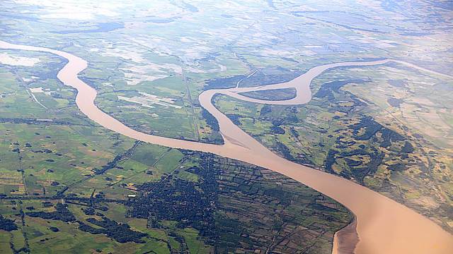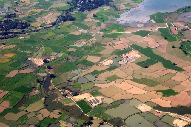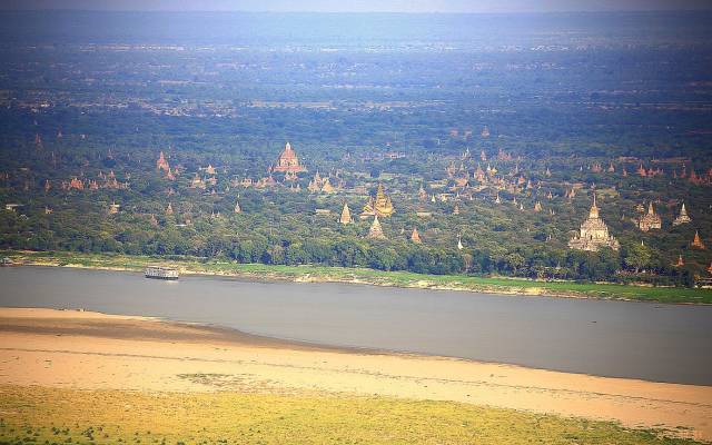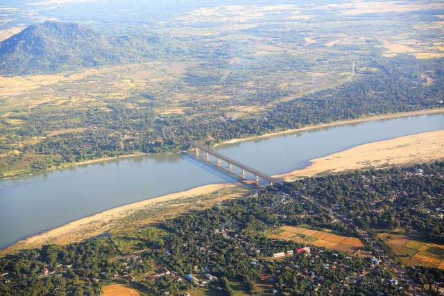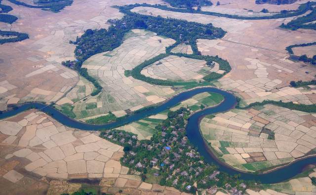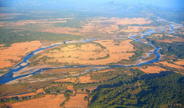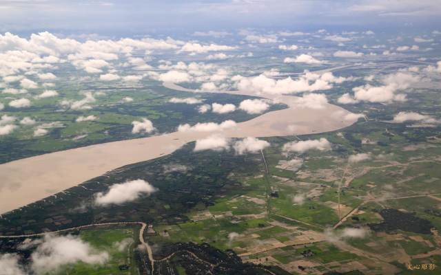 空中鸟瞰缅甸的母亲河-伊洛瓦底江