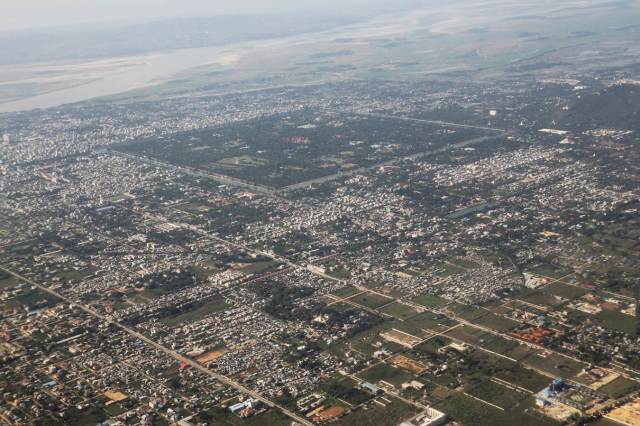 缅甸第二大城市曼德勒,中间的那块方形绿地是曼德勒皇宫