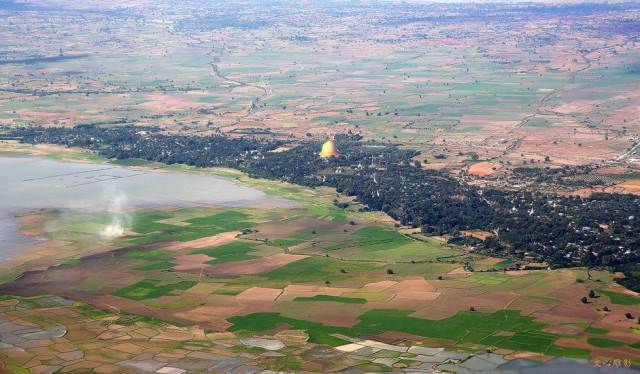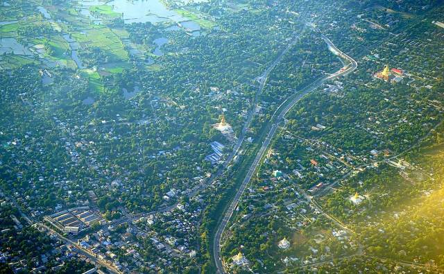从中国的昆明飞往缅甸的途中,当你透过舷窗看到地面有一片片闪闪发光的物体,那就可以判定已经在缅甸境内了。这是因为缅甸居民的屋顶大多采用铁皮,在阳光下就像镜子一样反着银光,当然还可以看到数不胜数泛着金光的佛塔...