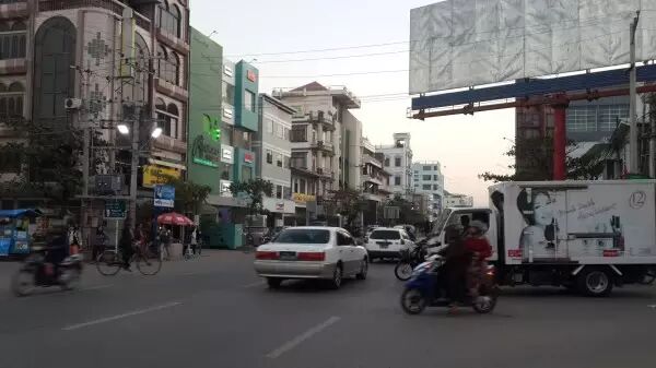 四个人拼车进城,一路田园风光,偶尔会有几座佛塔伫立在路边。半个多小时,到了市区,没有什么太高的建筑,满街都是中国智能机的广告。缅甸基本都是从日本买来的右舵车,但行驶方向却还是靠右。小卡车连坐带站能拉十几个人,后来一打听才知道这种车其实就是这的公交车。