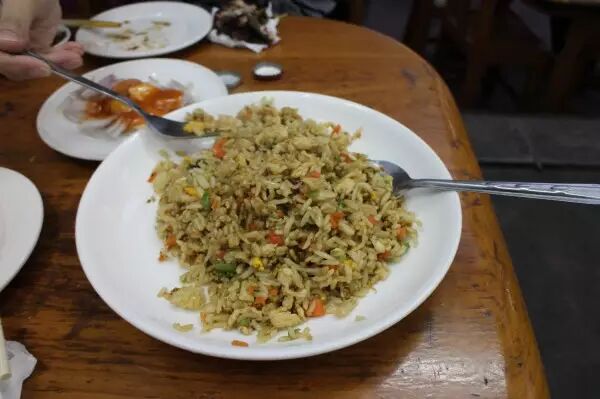 可相比起来缅甸的食物就太差强人意了,烤串撸下来混在一起装盘子里,蘸着小料吃,味道有点怪,而且还有点凉。不过炒饭的味道还是不错。