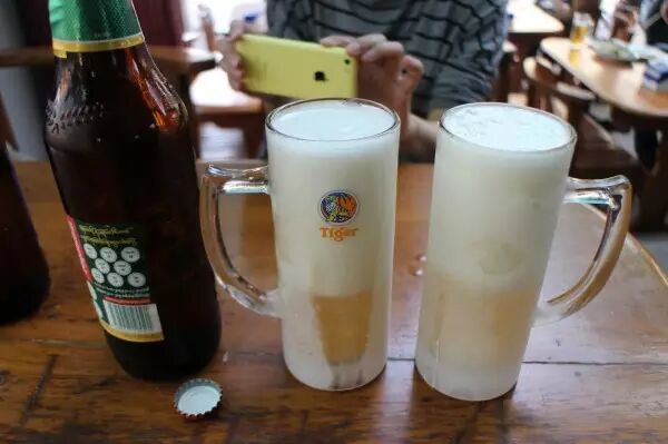 到晚饭时间,我们来到一家缅甸式烤串店,点了Myanmar啤酒,一堆烤串。啤酒杯竟然是冰过的,还挂着冰霜,看着就爽,喝起来更爽。缅甸啤酒还是不错的,据说还获过德国的大奖。
