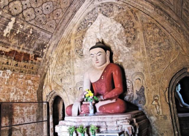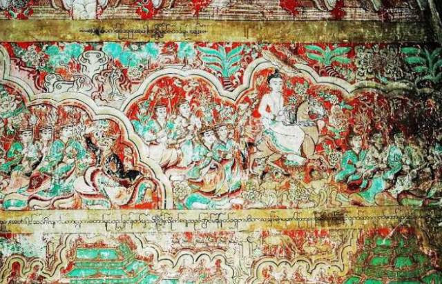 还有在阿难陀寺中有大量石雕的佛传图、施釉的陶板本生图以及装饰基坛的琉璃板本生图。寺内壁画多达1500幅,记载了佛前世与这世的事迹。