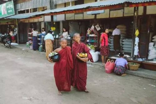 缅甸人信仰小乘佛教,捐重金修佛塔,贴金箔敬佛像,缅甸男子成人前要进行不少于7天的修行。坐落在曼德勒以南的马哈伽纳扬僧院(Maha Ganayon Monastery)规模庞大,在这里进修的僧侣数量过千,也被称作“千人僧院”。僧侣每日清晨托钵赤脚,外出乞食,并遵守过午不食的戒律。对于马哈伽纳扬的僧侣来说,取饭进食的盛大场面是一场仪式。