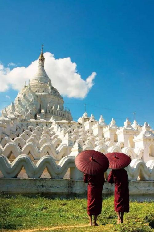 在广袤的中央平原,一座没有塔顶的红砖佛塔——达玛扬基塔(Dhammayangyi Pahto)——赫然矗立。走入内部,高耸的砖石回廊将内部空间拓展到极致;日光透过双层拱窗洒在步道上,泛起丝丝青光。回廊尽头,两个小沙弥手挽手从窗口闪过,他们不言不笑却让人心生怜爱。虽是刹那之景,却能在心头萦绕良久。听一位信佛人讲,在蒲甘万千佛塔中总有一座与你格外投缘,找到它,便能找到你前世的修行之所。