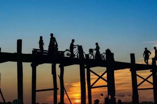 日落,乌本桥(U Bein Bridge)。多少人都是被这样一幅画面蛊惑着,追随至此。158岁的木桥,天黑前的暂别,这些本没什么了不起。有些人从桥上经过为达彼岸,更多人则静坐在扁舟上,面对剪影发呆。月升日陨,亘古不绝,却还是念它美。