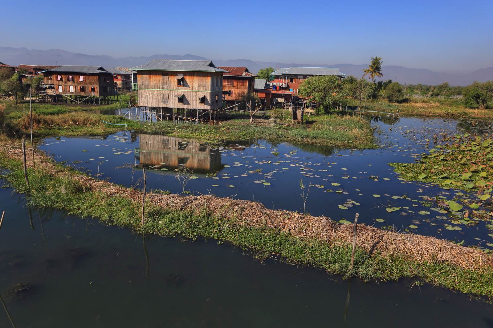茵莱湖位于缅甸北部掸邦高原的良瑞盆地上,为缅甸第二大湖,缅甸著名的游览避暑胜地。湖面海拔970多米,南北长14.5公里,东西宽6.44公里,三面 环山,来自东、北、西三面的溪流注入湖中,向南汇入萨尔温江。湖水清澈,阳光直射湖底。