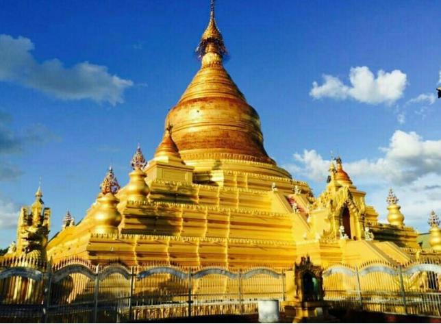 10月9日上午坐车到眉苗观看曼德勒境内眉苗县的一个佛塔,里面供奉的是一尊神奇大佛。原在1979年这尊佛像要运送到中国云南瑞丽的,途经眉苗翻车,而大佛丝毫无损,所以当地人认为大佛显灵不愿离开,故建此塔将其供奉在内,平时不少人前往朝拜。