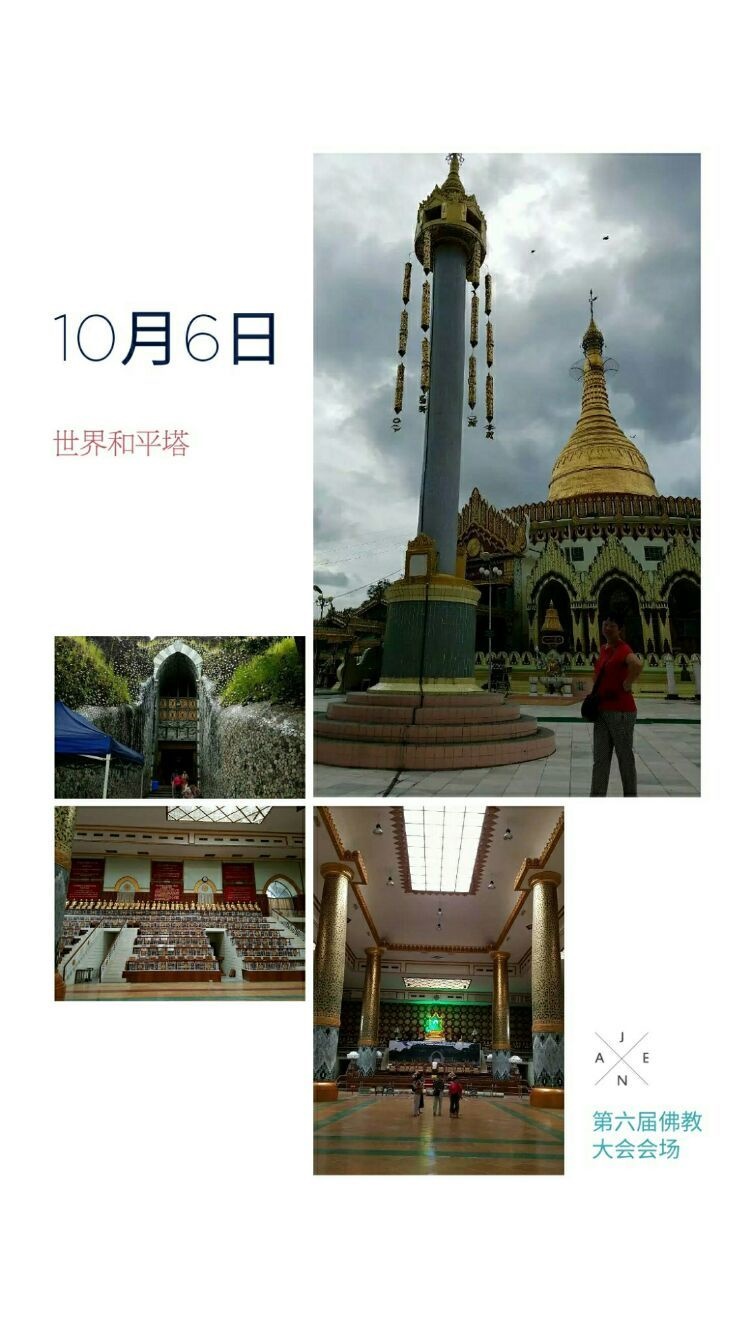 世界和平塔。为纪念第六届世界佛教大会在缅甸仰光召开,时任总理专门修建了这座塔,这是召开会议的会场。