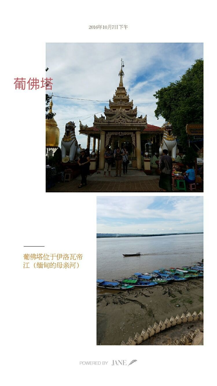 10月7日下午到伊洛瓦底江边的葡佛塔。该江是缅甸的母亲河。