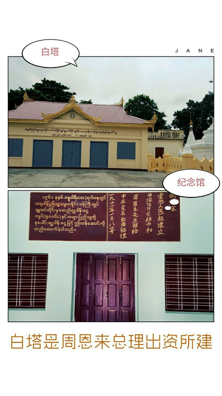 1961年1月8日,周恩来总理捐资5000缅币(当时缅币汇率比人民币高)和当地人民一起建立的佛塔。