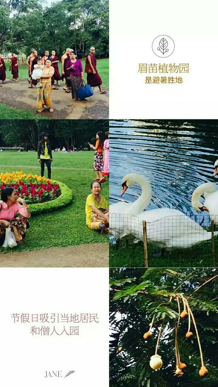 眉苗植物园是一个非常优美的避暑胜地,每逢节假日均有不少当地人一家大小带齐吃物开车前往,在园内草坪席地而坐,园内也有不少僧人前往;优美的环境更是新人拍婚纱照的首选。