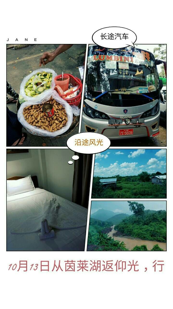 行程最后一站。10月13日上午8:30时坐长途客车重回仰光,经过13一小时才到达入住的酒店。