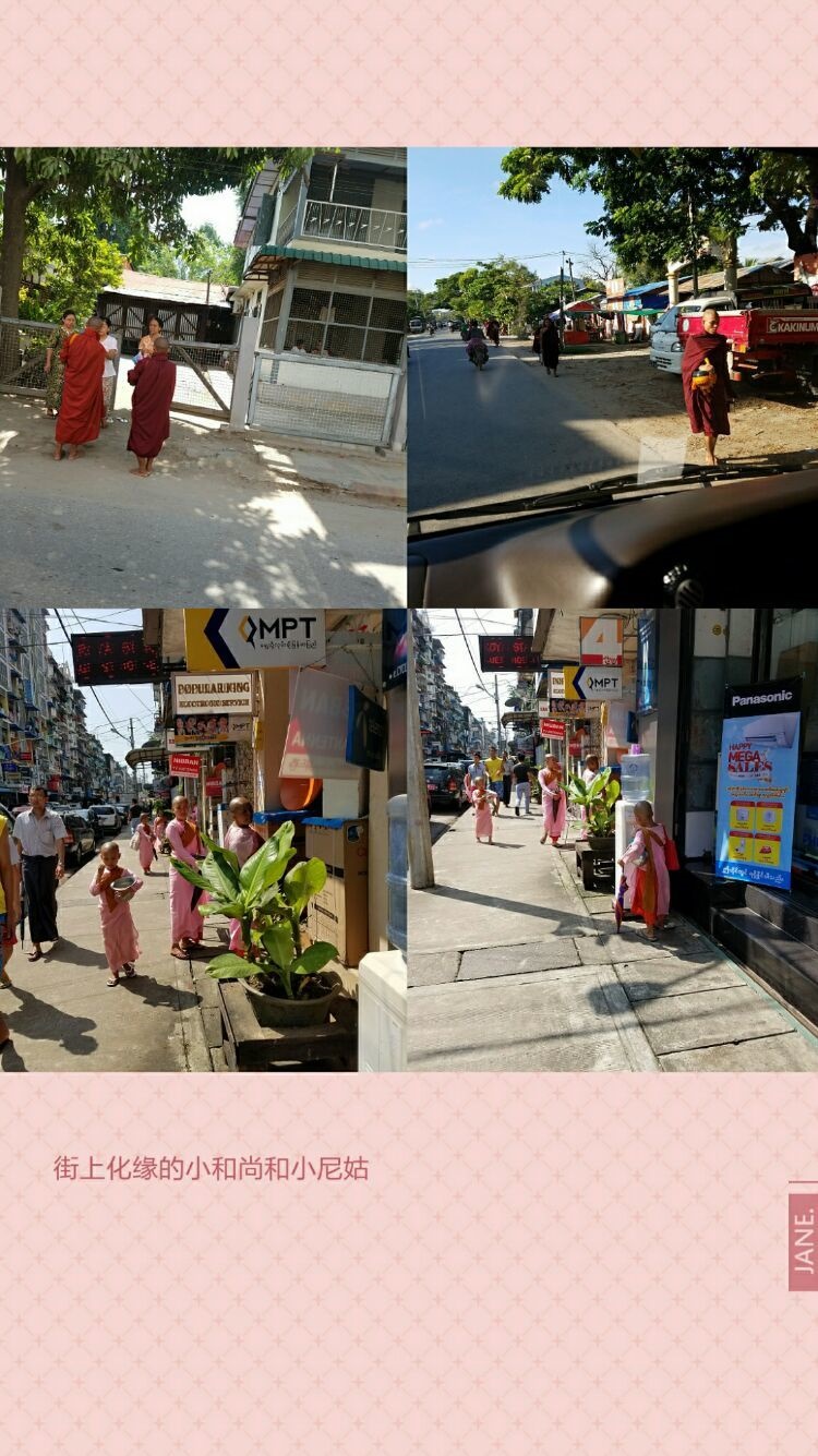 缅甸每天清晨,无论在大城市或在乡村小镇,随处可见化缘的和尚、尼姑。