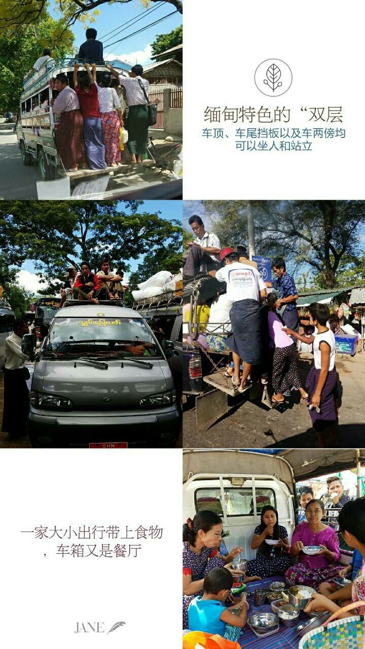 在缅甸的马路上,无论是平路、崎岖不平的乡村小道、或者弯急路陡的山路,随处可见当地的“双层巴士”,运载乘客可谓见逢插针,车顶以及车两傍车尾能坐则坐,不能坐则站,看见都令人发惊,但他们很淡定,习以为常,关键为了省钱。一家人出行,小车既是交通工具,又是餐厅和睡房。