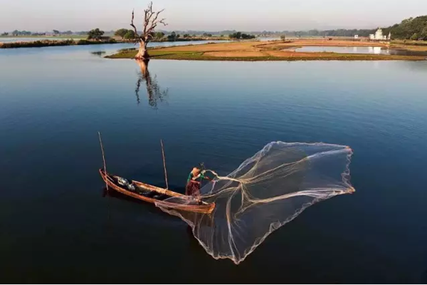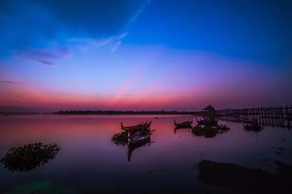 东塔曼湖(Taungthaman Lake)位于曼德勒的阿马拉布拉古城境内,湖上横跨着闻名世界的乌本桥,湖面恬静,周边围绕着农田,是一个兼具田园风光的湖泊。美丽的东塔曼湖,一天不同时间的不同颜色,以不同的色彩力度承载着闻名世界的乌本桥。