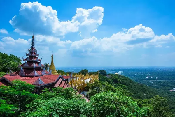 曼德勒山,位于曼德勒市区北部,旧称罗刹女山,是缅甸著名的佛教胜地。海拔236米。从山上眺望,曼德勒全城和伊洛瓦底江景色尽收眼底。这里以观赏落日时的城市全貌和江景著称,在此观赏日落是不错的选择。