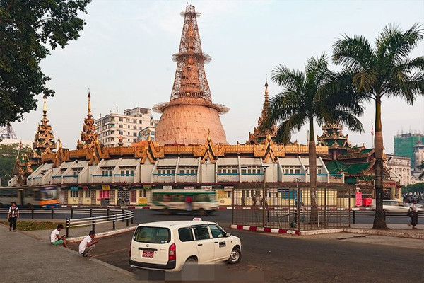世界上从来没有哪个转盘里有座佛塔。苏雷宝塔就坐落在马路中间转盘里,每天川流不息的车流围着宝塔运转。
