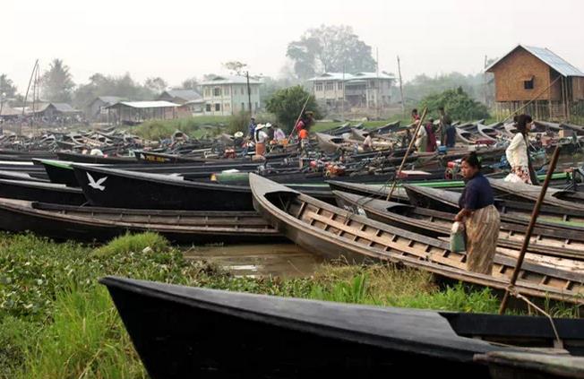 见到了居民们聚居的水上棚户区,木船是他们出行的唯一交通工具;