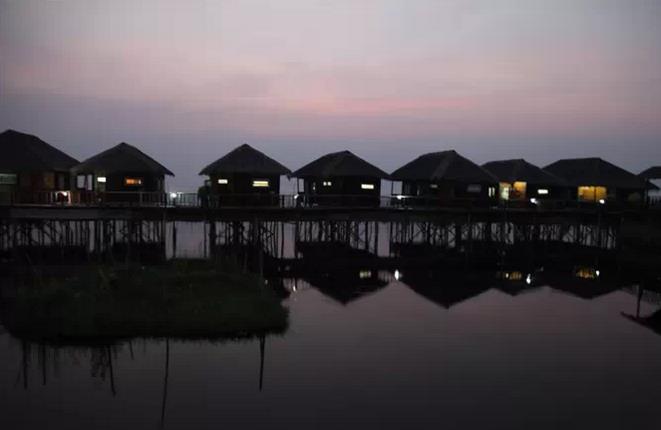 我们降落在茵莱瑞良机场。出租车载我们驰骋一个小时后,再坐船奔腾四十分钟,终于到达我们即将入住三天的水上酒店。