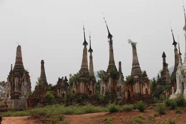 在茵莱湖最难忘的是,我们无意间闯入了一大片佛塔林。