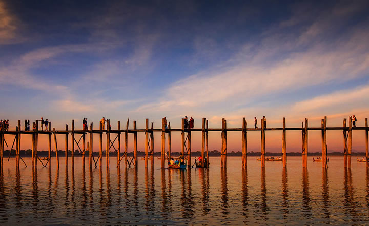 在当地,这座桥还有个好听的别名——“爱情桥”,深受佛教思想影响的缅甸人相恋时,会赶来乌本桥,立誓永葆这六种和睦互敬的精神。每年都有很多来自世界各地的情侣来到这里,与爱人一起在落日的余晖下走过一段浪漫的路。