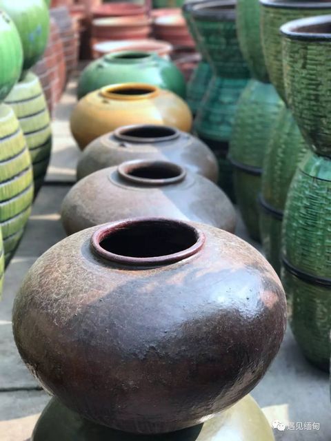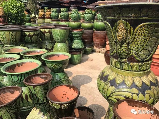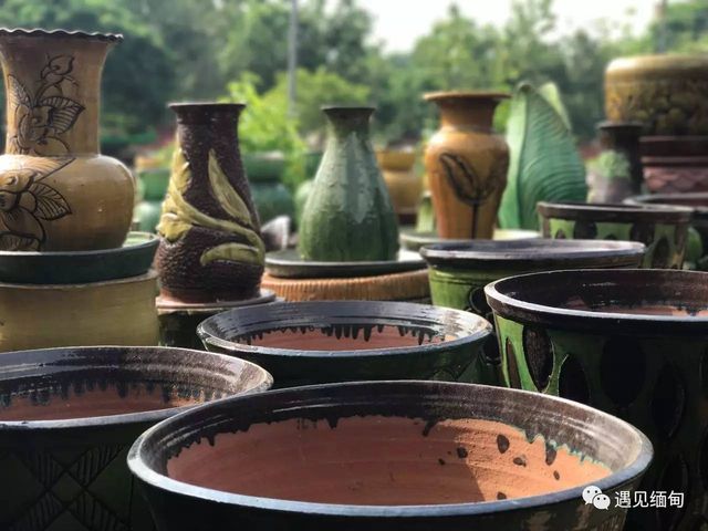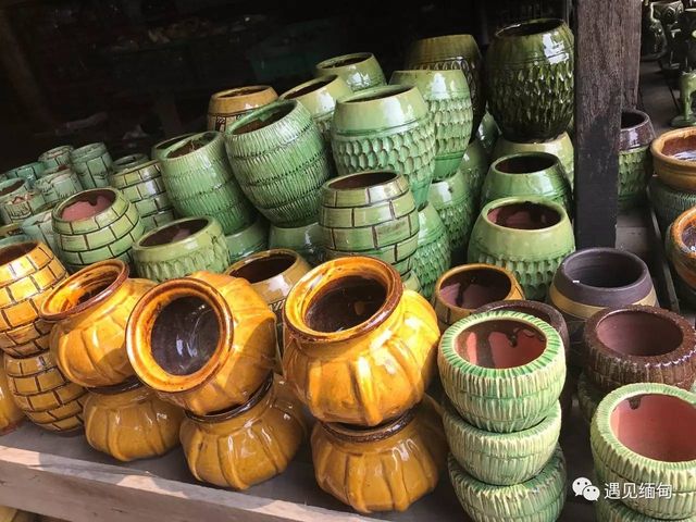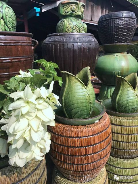 缅甸喜欢用土陶罐来装水,据说那样会使得水更清凉。土陶的透气性强,有利于在炎热里花卉的生长。故此娇媚艳丽的花儿也喜欢待在土陶的怀里。