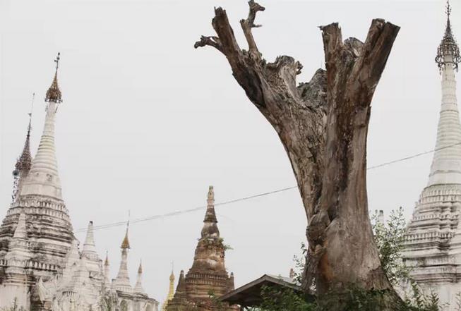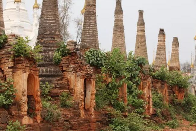 在茵莱湖最难忘的是,我们无意间闯入了一大片佛塔林。