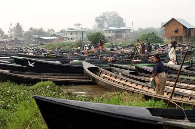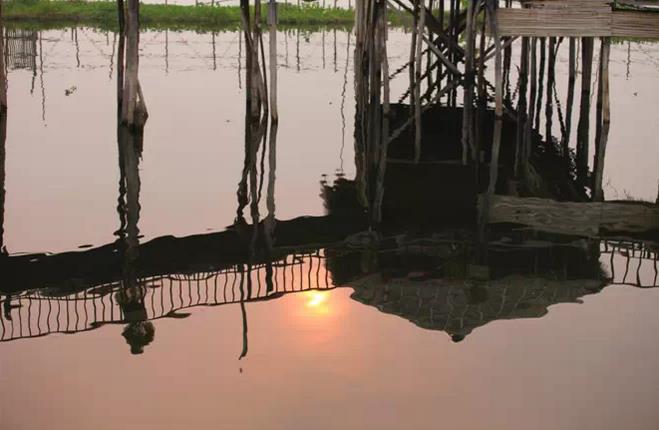 见到了居民们聚居的水上棚户区,木船是他们出行的唯一交通工具;