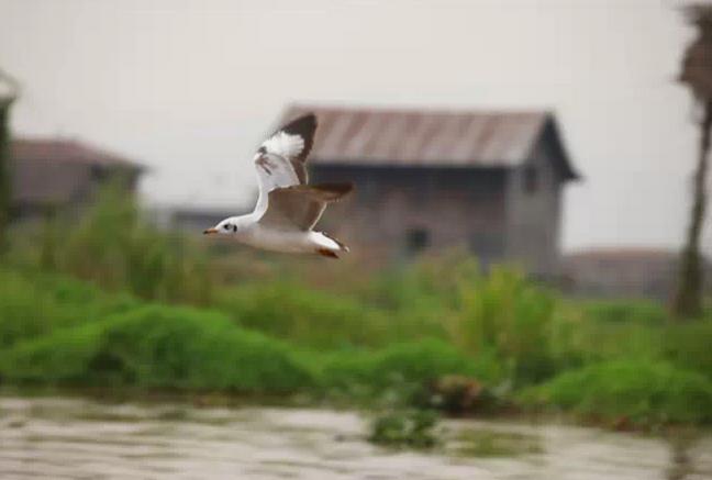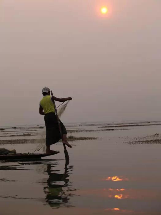 乍见之下,很是惊艳——经过这一路青青葱葱的田园风光,进入由混沌而渐渐开阔清澈的湖面,水鸟低飞,清风拂面,有木船载着单脚划桨的渔人从我们眼前掠过!