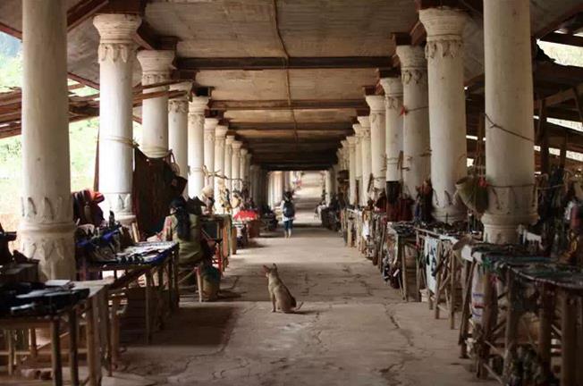 塔林旁有白色圆柱呈纵深排列的曲折长廊,走在里面,象走在没有尽头的光阴里,揣几分朝圣的心情。一直朝上走,果然有寺庙。