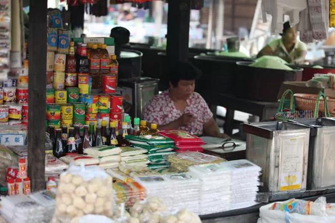 于是,我们见到了当地有名的水上集市,犹如一幅风土人情浓郁的异域画卷;