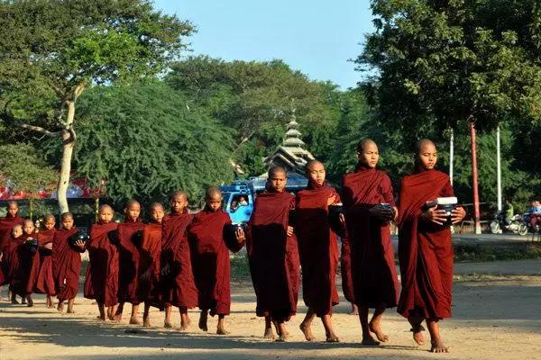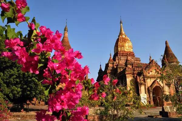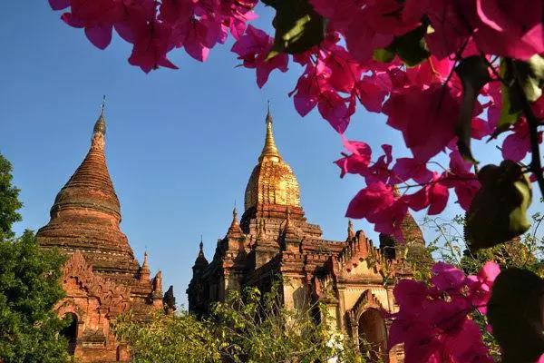 我们习惯称之为的冬季,在缅甸是不存在的,他们只有雨季和旱季两个季节,我们的冬春季,在缅甸是旱季,缅甸中部几乎每一天都是晴天,每一个早晨蒲甘的原野上都有一层薄雾,漂浮在树冠上,古塔则在雾气中隐现。太阳出来,霞光把雾染成玫瑰色的轻纱,披在庄重典雅的塔身。此时,巨大的热气球会升起,高高飘在蒲甘平原的上空,或者低低地掠过塔尖。看日出比看日落要辛苦得多,必须趁着天黑起床,12月份是缅甸的旱季,同时也是“凉季”,虽然白天也会有二十七八度的高温,但晚上会降到十摄氏度左右。