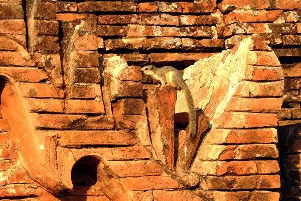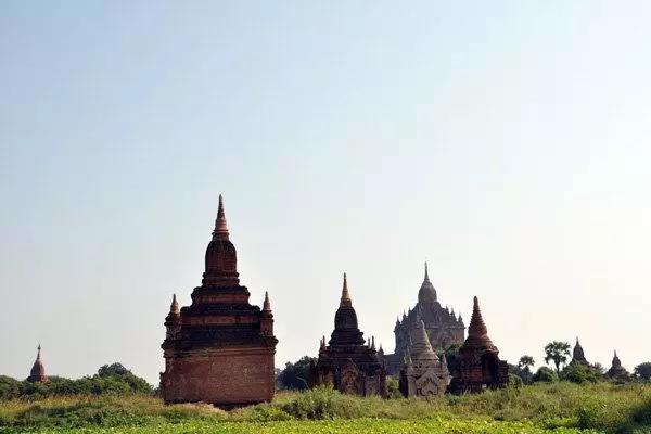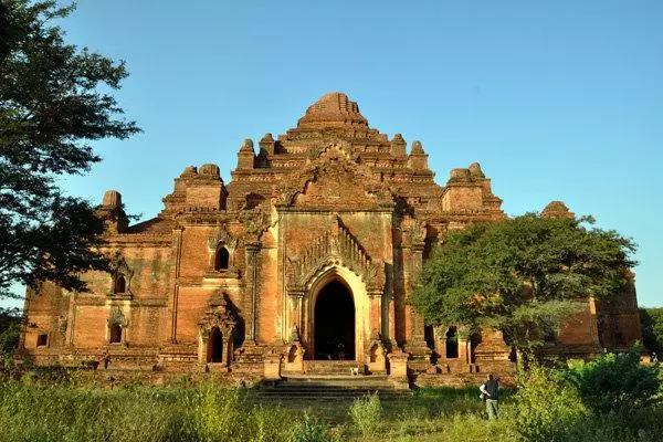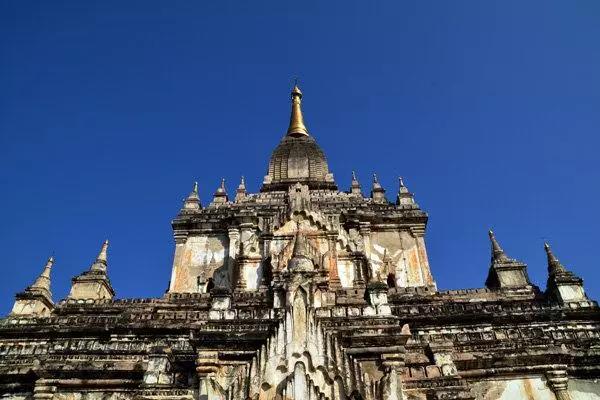 由Shwe-leik-too下来,我们进入了观光的高潮期,乔治亚驾着马车每次走几分钟就会停下,请我们去参观。悉隆敏罗(Htilominlo Pahto)是离公路最近的第一座高塔,十三世纪初建成,外墙精美的浮雕尚存,结构近似陡峭的金字塔,主塔尖由若干小塔拱卫,直指蓝天。乌帕利塔(Upali Thein)与其说是塔,不如说是一幢外墙被岁月熏黑的匣状小房子,虽然不大,但外形奇特,让人过目不忘,屋子锁着门,不过守塔人看到有人来了,就过来开锁,让我们参观里面的古壁画,那恐怕是蒲甘最漂亮的壁画。马哈菩提(Mahabodhi Paya)是蒲甘唯一一座印度教风格的佛塔——远远就能看到高耸而扁,密集雕塑神像的塔身,但走近了就会发现原应是印度教诸神全部是佛像,马哈菩提恐怕是蒲甘最独特的一座塔。达宾纽(Thatbyinnyu Pahto)是蒲甘最高大的塔,远远就能看见它金色的塔尖,走近它,如同宫殿一般的建筑,气势恢宏。阿南达(Amanda Pahto)是最漂亮的塔,建于十一世纪,年代仅次于瑞喜光塔,建筑结构复杂,如同城堡,具有多种特色,是缅甸早期寺庙建筑艺术和雕塑艺术的杰作代表,建成之后被一再模仿,但从来没有被超越……我们还参观了蒲甘四大金塔之一的瑞山陀塔(Shwesandaw)、蒲甘第二高塔高德帕林(Gawdawpalin)、存有早期壁画的帕陀沙慕亚(Pahtothamya)……